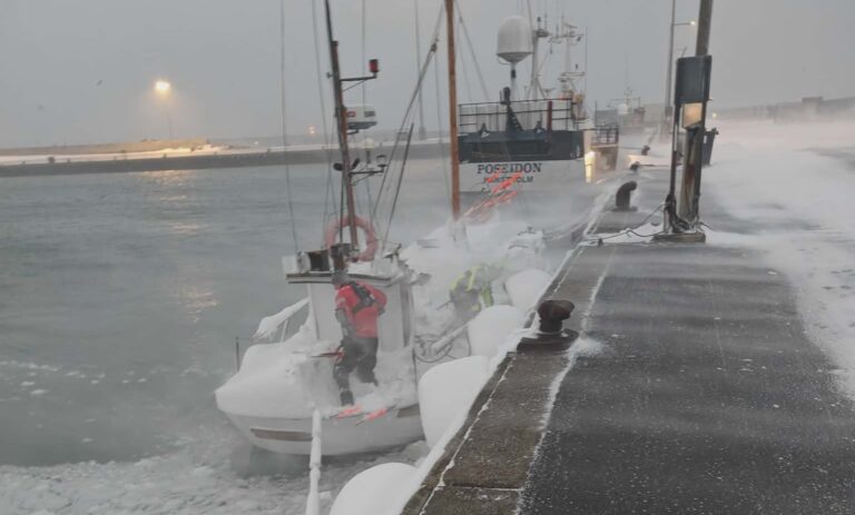 In de haven van het Deense Hanstholm is vrijdag een vissersschip gezonken door zware sneeuwval. Het incident zorgde voor grote...